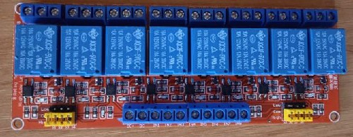 Kvôli zariadeniam pracujúcim so sieťovým napätím (alebo už presahujúcim výstupný výkon mikrokontroléra). Bol tiež nainštalovaný 8-kanálový reléový modul. Používame na ňom iba 6 relé, čo však zaisťuje možnosť ďalšieho rozšírenia systému. Vloženie viacerých ventilov do systému alebo niekoľkých čerpadiel rôzneho výkonu. 4 relé riadia ventily ďalšie dve na čerpadlách. Čerpadlo inštalované v studni je 750W a čerpadlo inštalované v nádrži je 1100W. náš mikrokontrolér to nedokáže zvládnuť. Ovládanie jednotlivých komponentov sme mohli vyriešiť jednotlivo samostatnými relé, ale to by malo za následok viac vodičov a krížových spojení, ktoré sme radšej ignorovali.